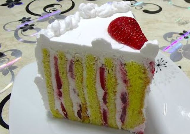 Umutiti slatku pavlaku, šećer u prahu i krem sir. Jagode iseći na listiće. Koru iseći na tri trake po dužini. Naneti fil na sve trake. Preko fila poređati jagode. Jednu traku uviti u rolat i staviti na tacnu uspravno. Oko rolata uviti drugu traku, a potom i treću. Isto ponoviti sa drugom korom. Oko torte staviti obruč da joj sredi i očuva formu. Tortu odozgo premazati sa malo preostalog fila i staviti u frižider da se ohladi. Za ukrašavanje umutiti slatku pavlaku sa šećerom u prahu i ukrasiti tortu.