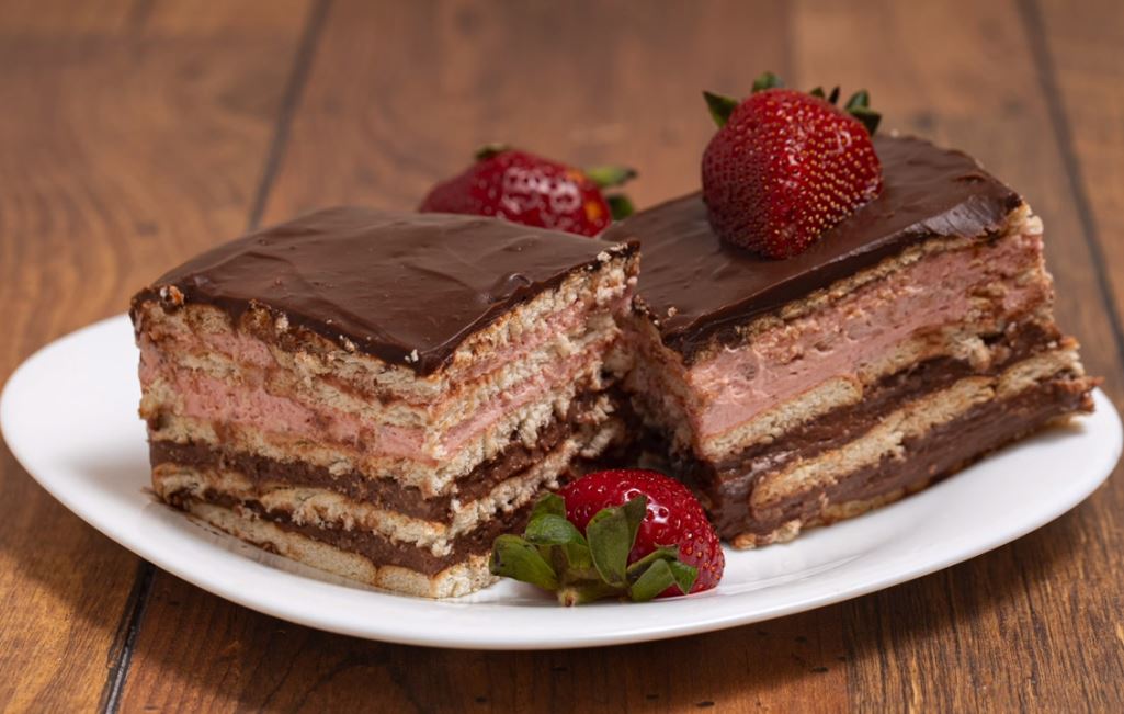 Keks torta sa dva fila čokolada i jagoda iz Bebine kuhinja.