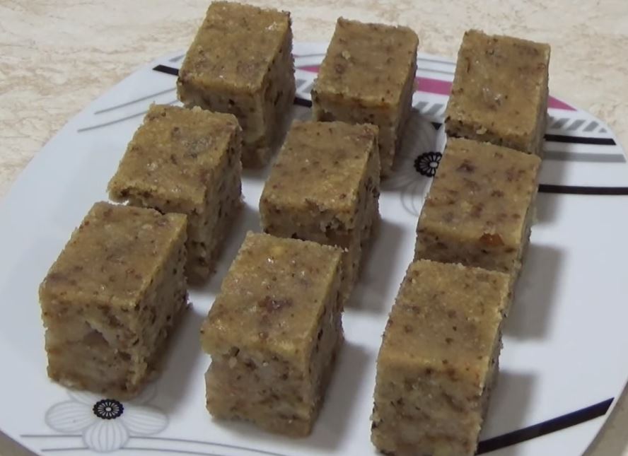 Prosejati brašno pomešano sa praškom za pecivo. Dodati griz, seckane orahe, suvo grožđe i izmešati. Sipati vodu i ulje i dobro umešati da ne bude grudvica.