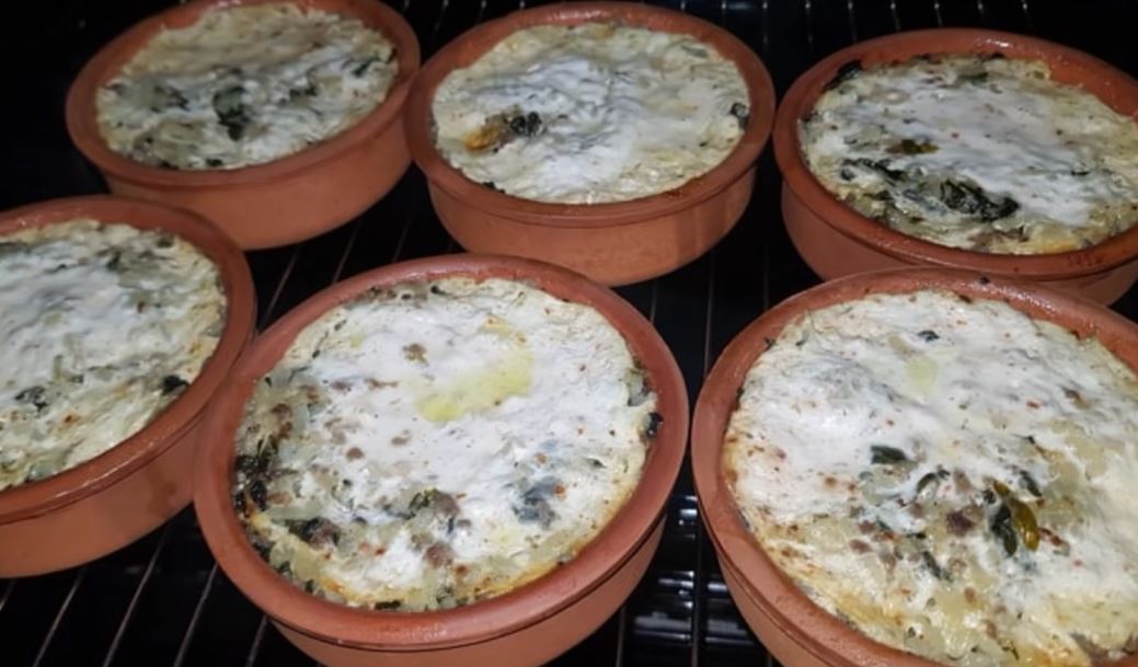 Smjesu pirinča stavite u glinene posude i prelijte kiselom pavlakom. Peći u zagrejanoj rerni na 220 stepeni 10 minuta.