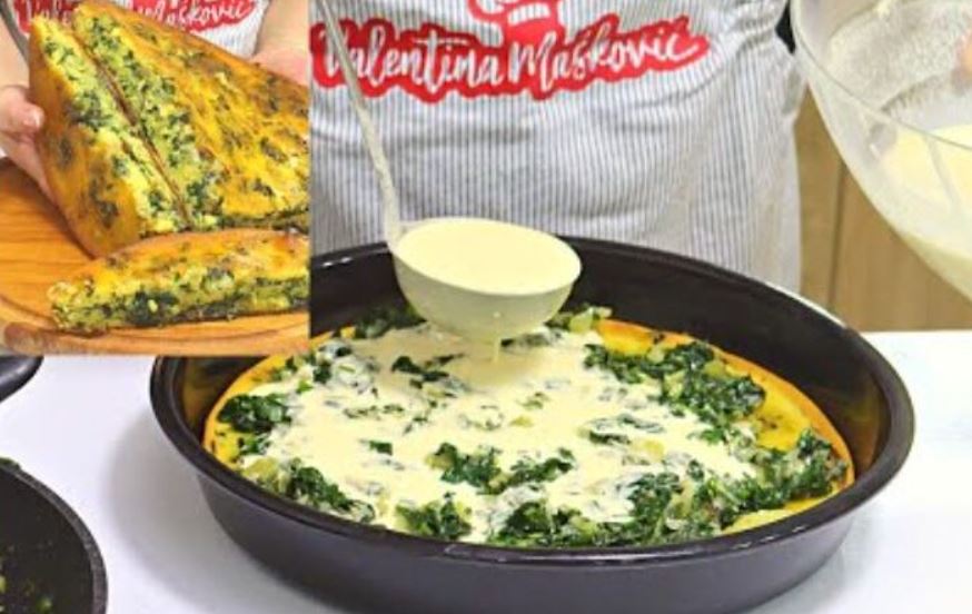 Priprema: U litar vode dodajte so i ulje, sodu bikarbonu. Zatim prosejte kukuruzno brašno i pešnično pa lepo izmutite sve sa vodom. Praziluk iseckajte, kao i paprike iz turšije i sve propržite na malo ulja. Dodajte i spanać pa sve izdinstajte. Ugrejte rernu na 200 stepeni Celzijusa. U tepsiju izlijte smesu od brašna, pa dodajte fil, pa preko prelijte još smese od brašna i sve pecite dok ne dobije zlatnu boju. Prijatno!