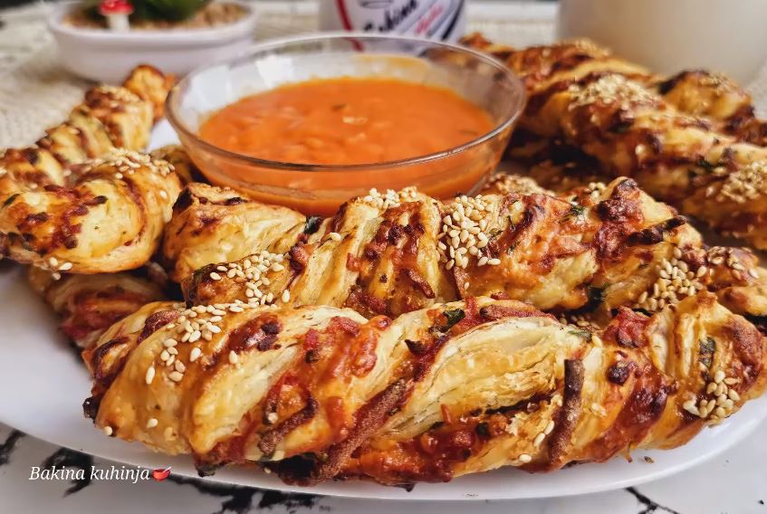 KUJNA,TOP VEST | May 30, 2024 Ukusni štapići za omladinske žurke, brzo lako hrskavo i ukusno Potrebno je: 2 gotova testa 100 gr kačkavalja 100 gr rendane šunke 50 ml kečapa seckani peršun origano izvor:kodbakeugostima.blogspot.com Za detaljnu pripremu pogledajte video. Jafa torta – Odličnog ukusa, jednostavna za pripremu Torta Ruska salata obara s nogu – Probajte i videćete – uživanje je zagarantovano.