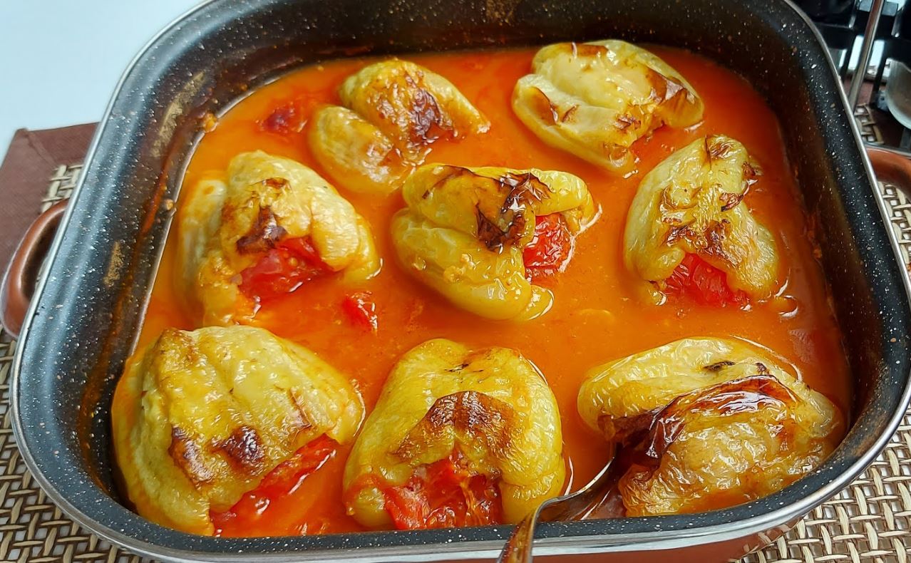 Redjati u plepodmazan pleh. U 200 ml vode dodati paradajz i kašiku brašna i sipati u pleh sda paprikom. Pouljiti i peći sat vremena na 200 stepeni C