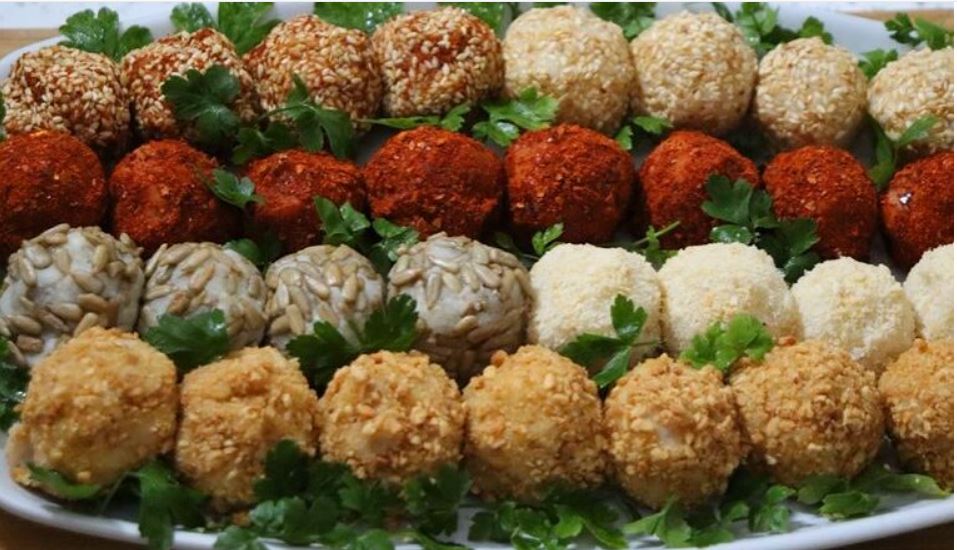 5. vrsta kuglica u polovinu smese broj 4 dodajemo kašiku kečapa a u susam za valjanje malo mlevene crvene paprike