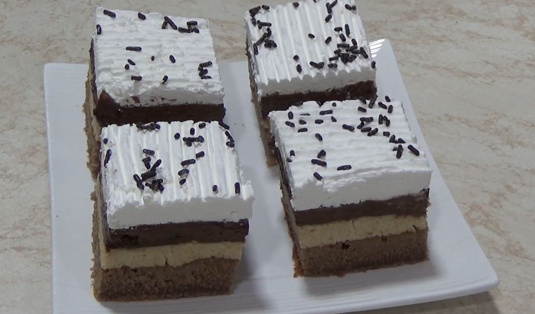 Preko kore rasporediti prvi fil. Preko prvog rasporediti drugi fil. Umutiti slatku pavlaku sa šećerom u prahu i ukrasiti kolač. Staviti kolač u frižider da se dobro ohladi.