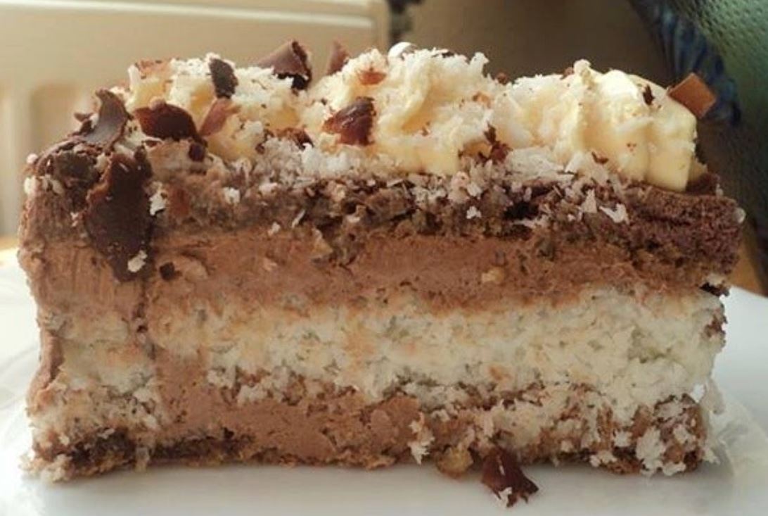 Umutiti i ispeći 2 kore od materijala za crne kore na 180 stepeni. Umutiti i bijelu koru i peći je na (oko) 150 stepeni.