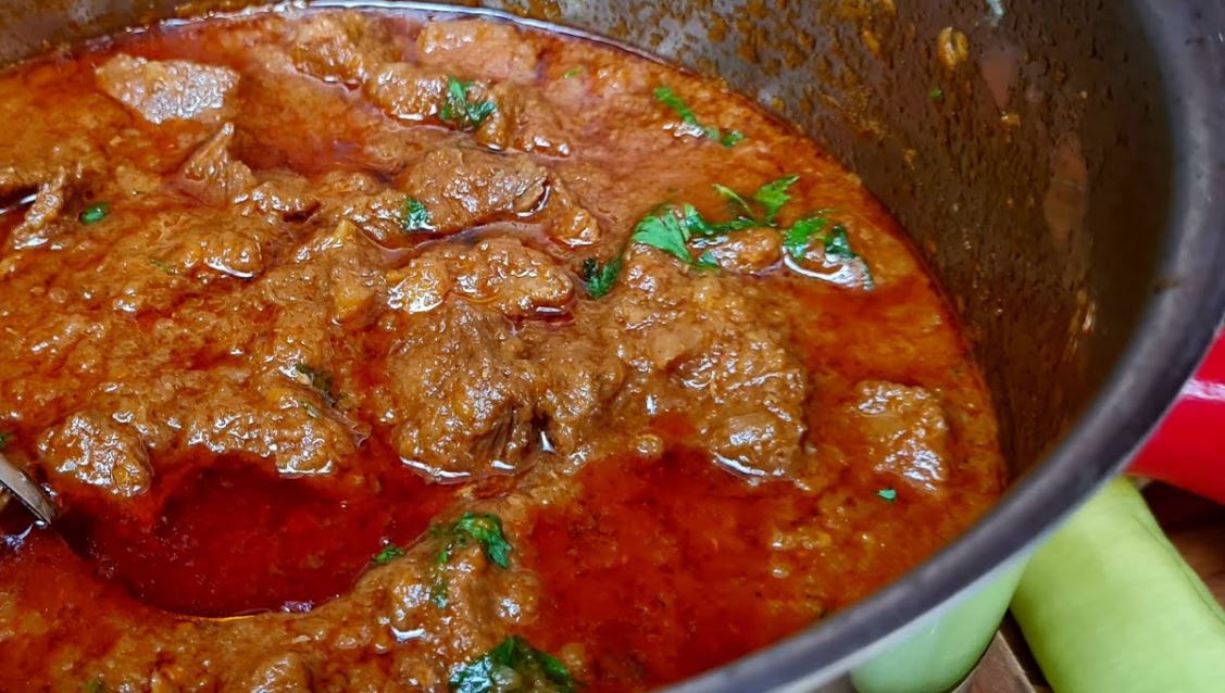 Posle otprilike 2h tečnost je redukovana i dodate slatku papriku i 150ml paradajiz soka. Promešate i kad proključa promešate i dodate otprilike 2dl vode kako bi bilo manje gusto. Doterate ukus po potrebi i dodate izgnječen beli luk. Krčkati još 30ak min, nije greška ni duže ako imate vremena.