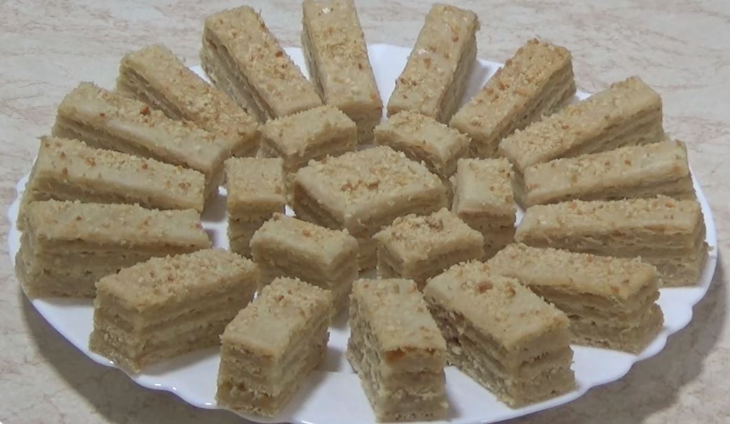 Kad se fil prohladi, staviti jednu koricu na tacnu i nafilovati. Preko fila rasporediti jednu kašiku meda. Staviti drugu koricu, pa i nju nafilovati i ponavljati postupak do kraja. Pitu posuti sa malo mlevenog keksa i ostaviti je da odstoji da korice upiju fil i omekane.