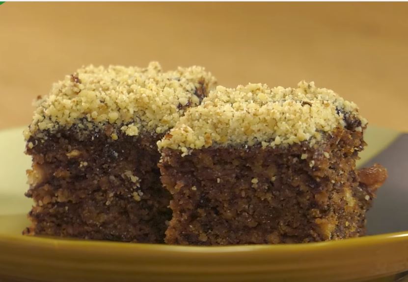 Premazati džemom i posuti mlevenim orasima. Seći na kocke i poslužiti