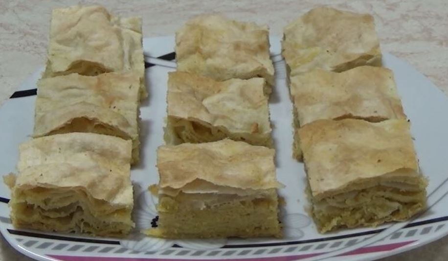 U podmazan pleh staviti jednu koru i premazati filom. Zatim staviti drugu koru i premazati filom. Tako raditi dok ima kora i fila.