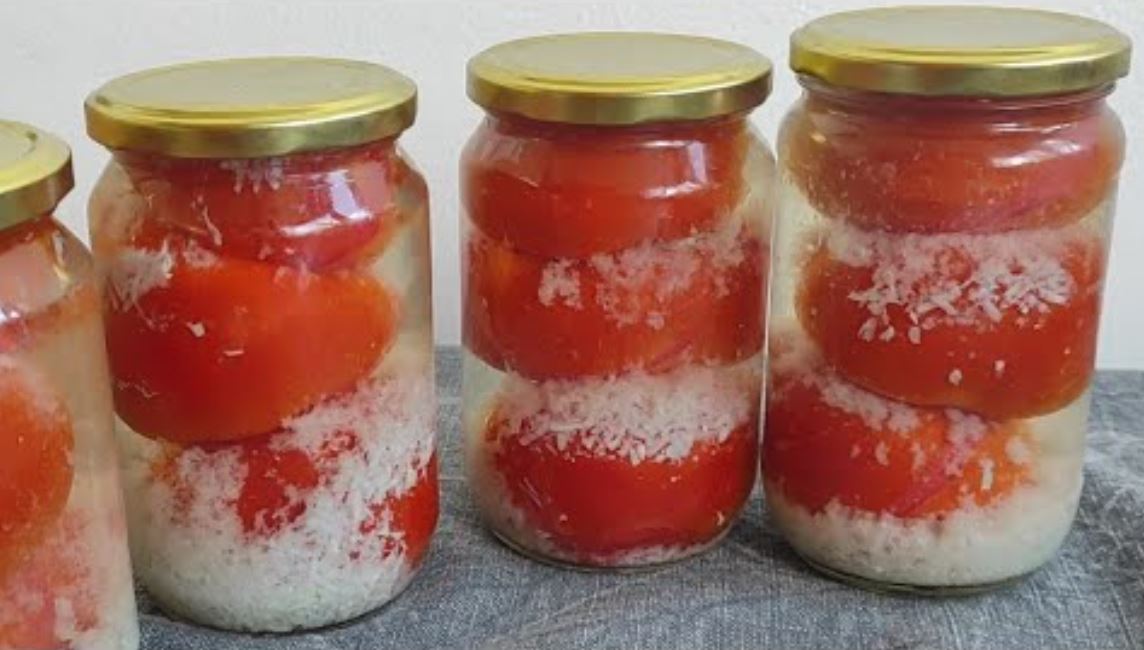 Paradajz u komadu za zimu sa bijelim lukom. Omiljena zimnica.