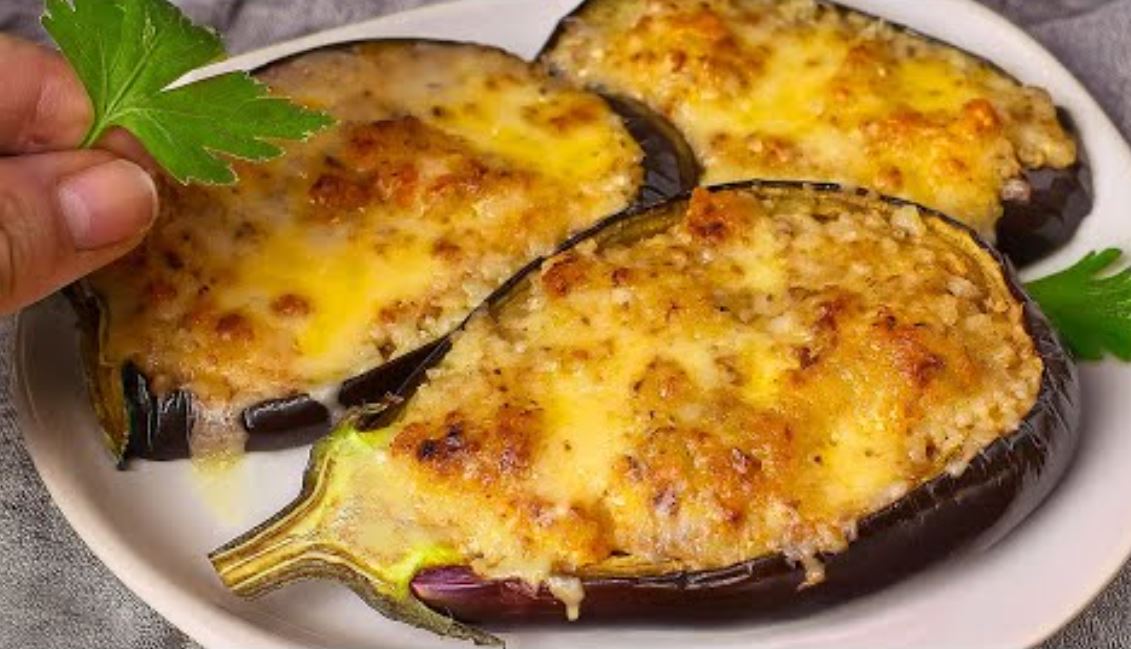 Složite napunjene patlidžane u posudu za pečenje i stavite ih u prethodno zagrejanu rernu na 180°C da se peku oko 10-15 minuta, dok se sir ne otopi i sve se lepo zapeče.