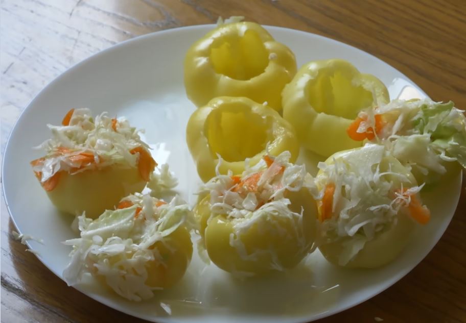Sve to prokuhati, stavljati očišćene paprike u prokuhalu smjesu. Kuhati dva do tri minuta, vaditi u drugu posudu.Postupak ponavljati dok ne potrošite sve paprike. Tople paprike stavljati u čiste tegle. Napuniti ih sa tekućinom u kojoj su se kuale, zatvoriti poklopcem. Ove paprike se mogu koristiti naredni dan.