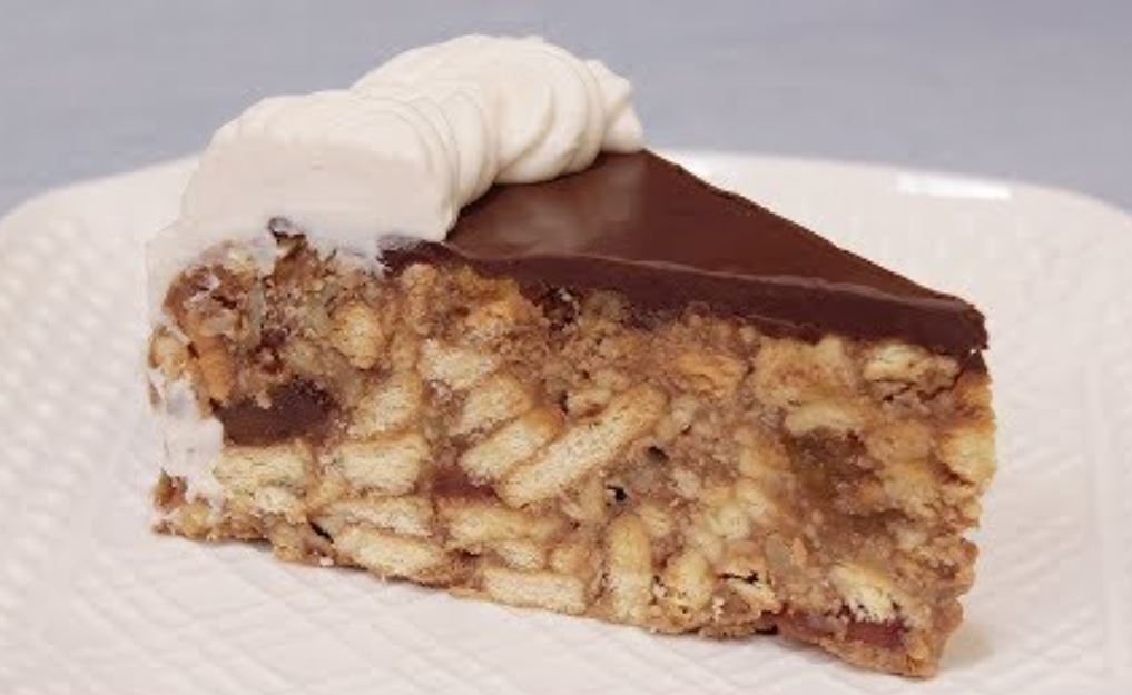 3 kašike kristal šećera, 80 grama pudinga od vanile, 100 grama kakao krem table, 200 grama posnog margarina, 200 grama posnih žele bombona, 200 grama oraha500 grama posnog keksa.