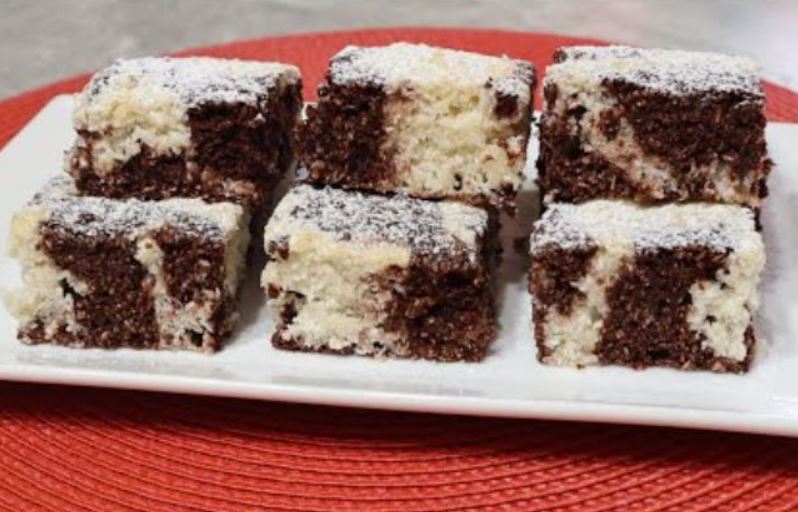 Crno – beli kokos kolač. Veoma je jednostavan.