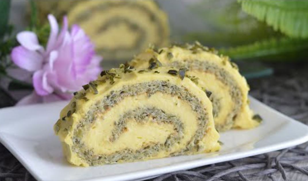 Otkrijte ovaj jedinstveni rolat s bučinim sjemenkama i kremom od bijele čokolade. Osvježavajuće, kremasto i s blagom notom ruma, ovaj rolat će postati vaš omiljeni desert! Posut sjeckanim bučinim sjemenkama, savršen je za svaku priliku.