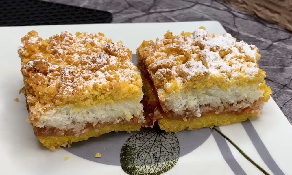 Prhki kolač sa dva nadjeva . Kokos i jabuke u kombinaciji sa prhkim tijestom daje savršeni ukus. Kolač naših majki uvjek daju tu čar na naše djetinstvo. Nadam se da ćete i vi isprobati kolač .