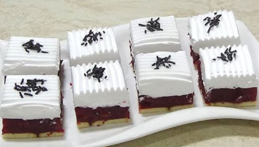 Pleh veličine 20×30 cm obložiti papirom za pečenje i poređati keks. Preko keksa sipati vruć fil i ostaviti kolač da se dobro ohladi.