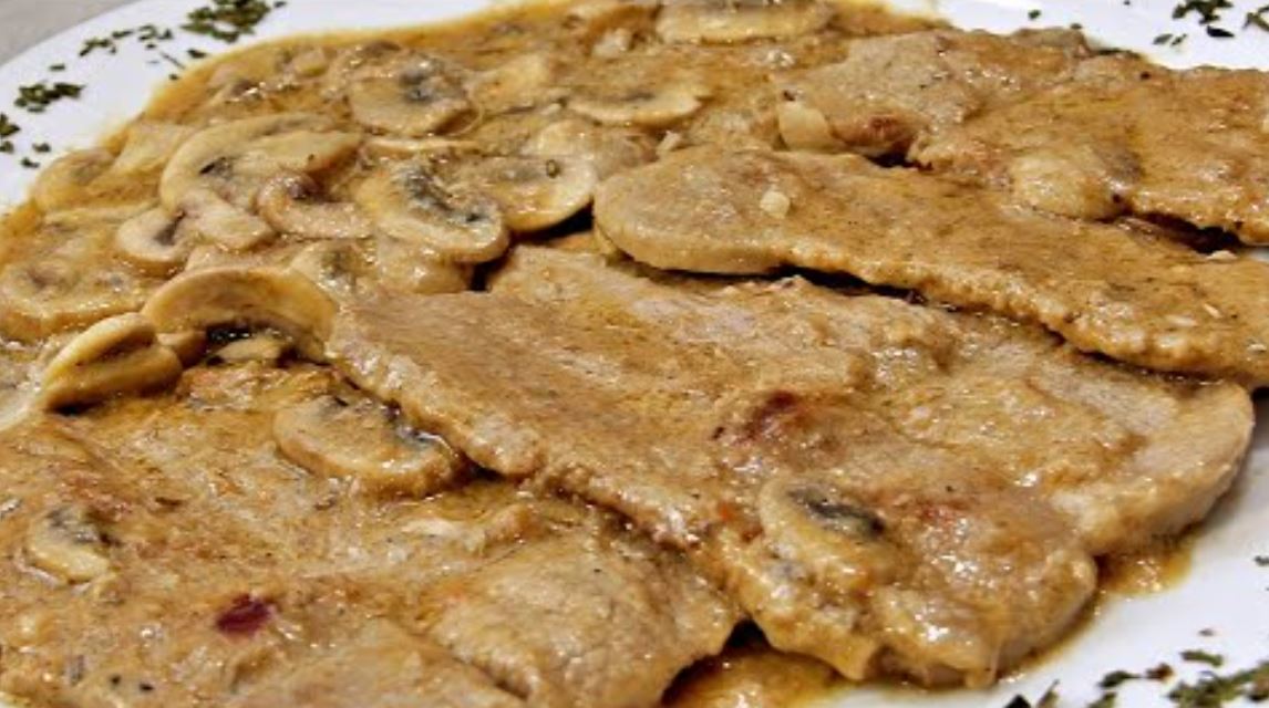 Teleće natur šnicle u saftu sa gljivama. Mekano meso se topi.