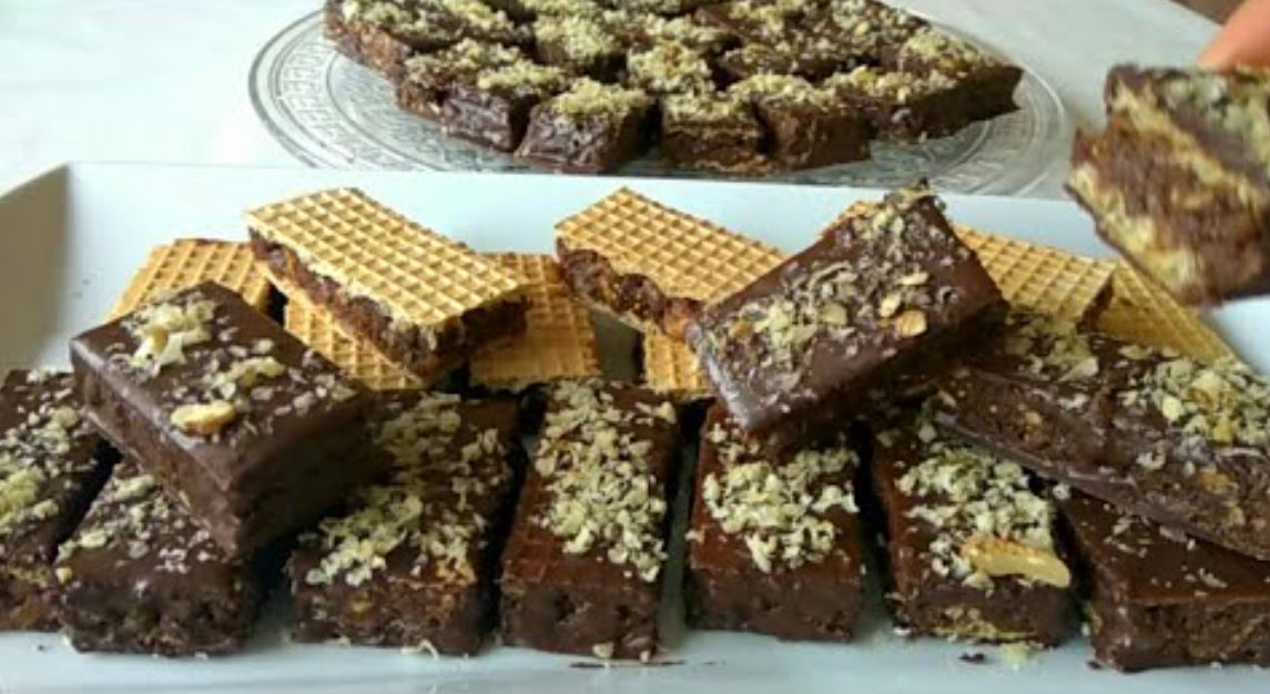 Priprema čokoladne oblatne sa orasima.