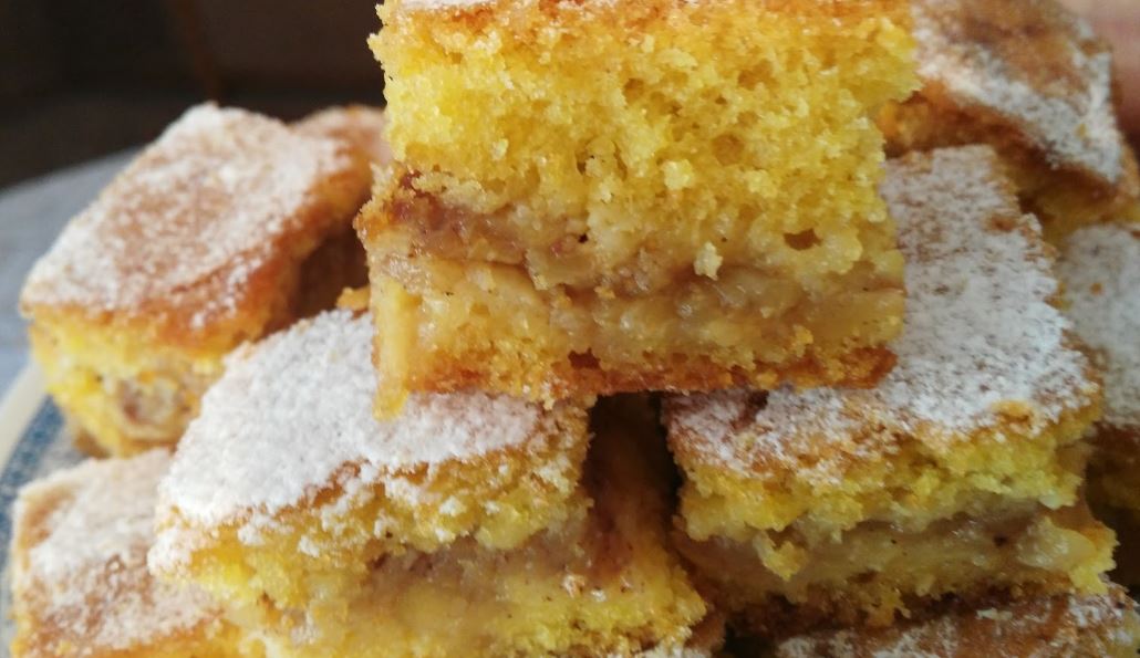 Priprema: Umutiti jaja sa šećerom dodati cimet, limun (korica) ulje, i omekšan margarin, zatim brašno prašak za pecivo i vanilin šećer i na kraju griz. Sve lepo izjednačiti. Jabuke očistiti, izrendati malo zasladiti i dodati cimeta .