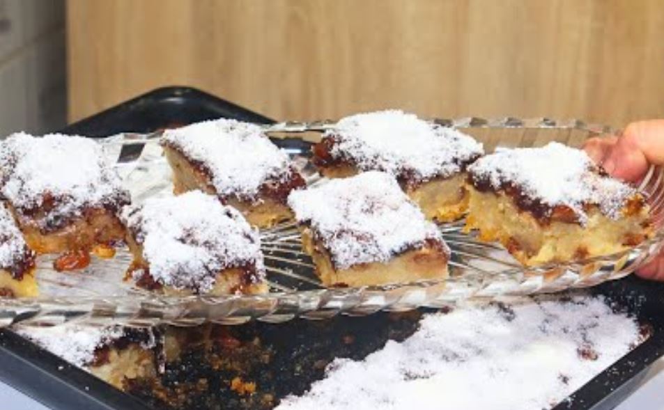 Jeftin kolač na”brzaka”od jabuka i kokosa.Bez jaja i mleka bez miksera.Mera na kašike