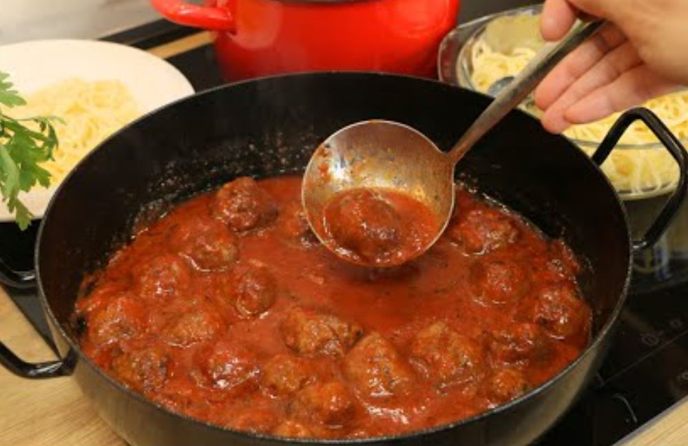 Najlakše je da ćufte ispečete u rerni umesto u tiganju, bez dodavanja brašna u sos, recept baš potaman. Svi volimo ovo jelo. Pišite mi da li ste probali sa špagetama.