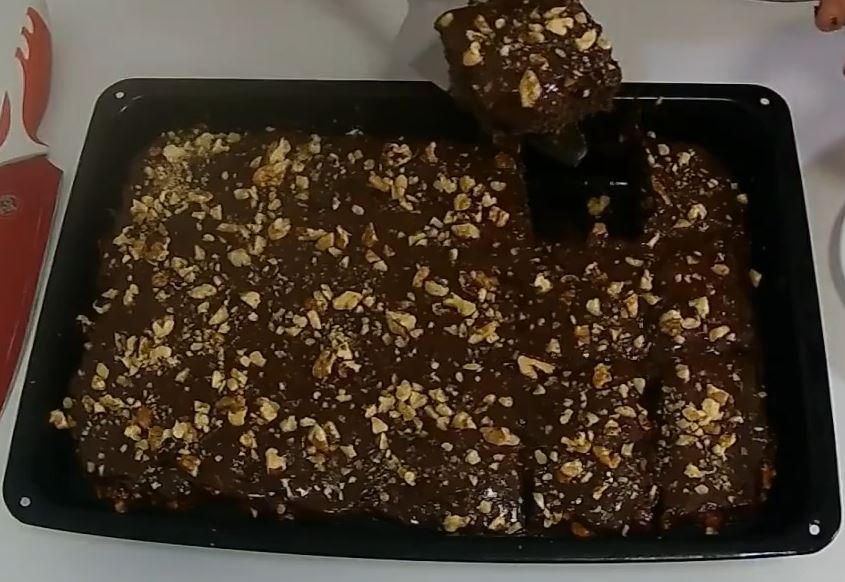 Preko ispečenog i ohlađenog kolača naneti džem pomešan sa 200gr. seckanih oraha.Zatim otopiti 150-200gr.crne čokolade pa preliti preko.I na kraju posipati seckanim orasima.