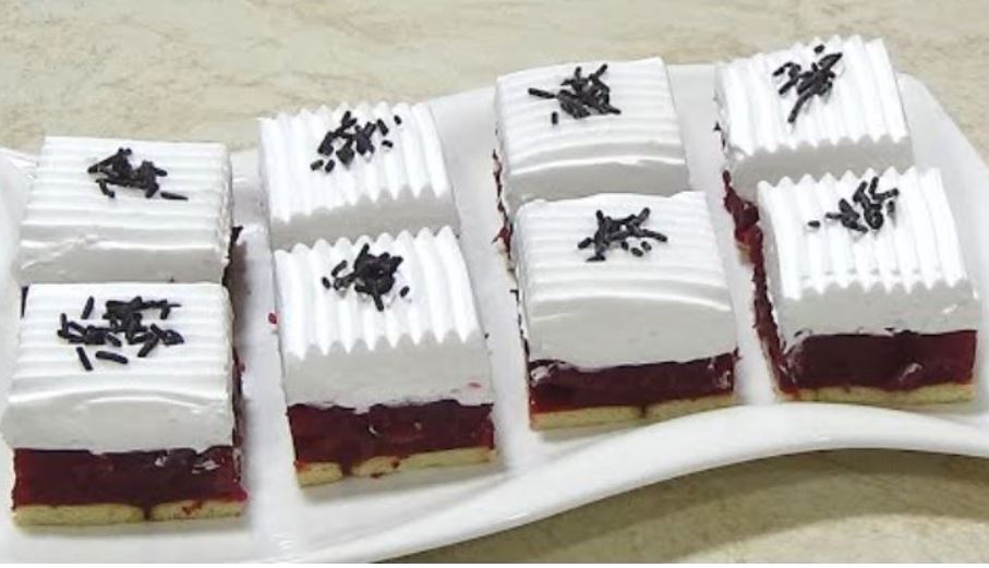 Pleh veličine 20×30 cm obložiti papirom za pečenje i poređati keks. Preko keksa sipati vruć fil i ostaviti kolač da se dobro ohladi.