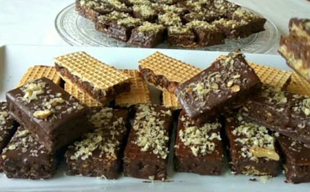 Rastopimo čokoladu sa uljem u koju stavljamo izrezane kockice oblatne.