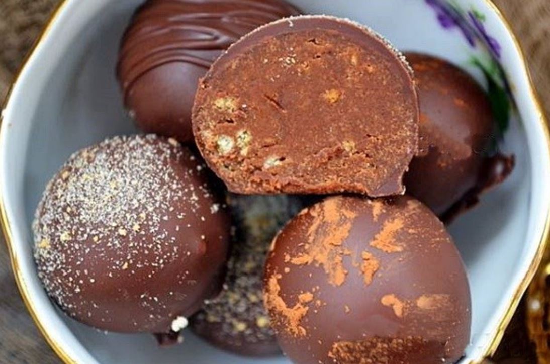 Istopiti cokoladu s uljem i onda jednu po jednu truffle umakati u cokoladu. Posuti sa kakaom, cimetom, samljevenim piskotama ili jednostavno preliti cokoladom. Ostaviti ih u frizider bar jos 30 minuta pa posluziti.