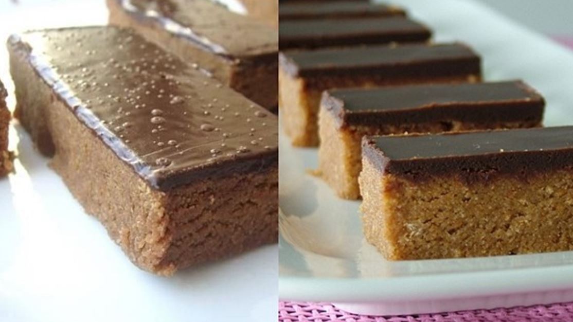 Uljem podmazati tepsiju cca. 30×20 cm i u nju izliti masu. Poravnati nozem. Ostaviti malo da se prohladi. Za to vreme napraviti glazuru. Na blagoj vatri / na pari / u mikrotalasnoj otopiti cokoladu za kuvanje sa malo putera ili ulja, ja sam dodala i malko mleka. Premazati cokoladnom glazurom i staviti u frizider da se dodatno stegne i dobro ohladi. Seci na stanglice ili kockice i uzivati.