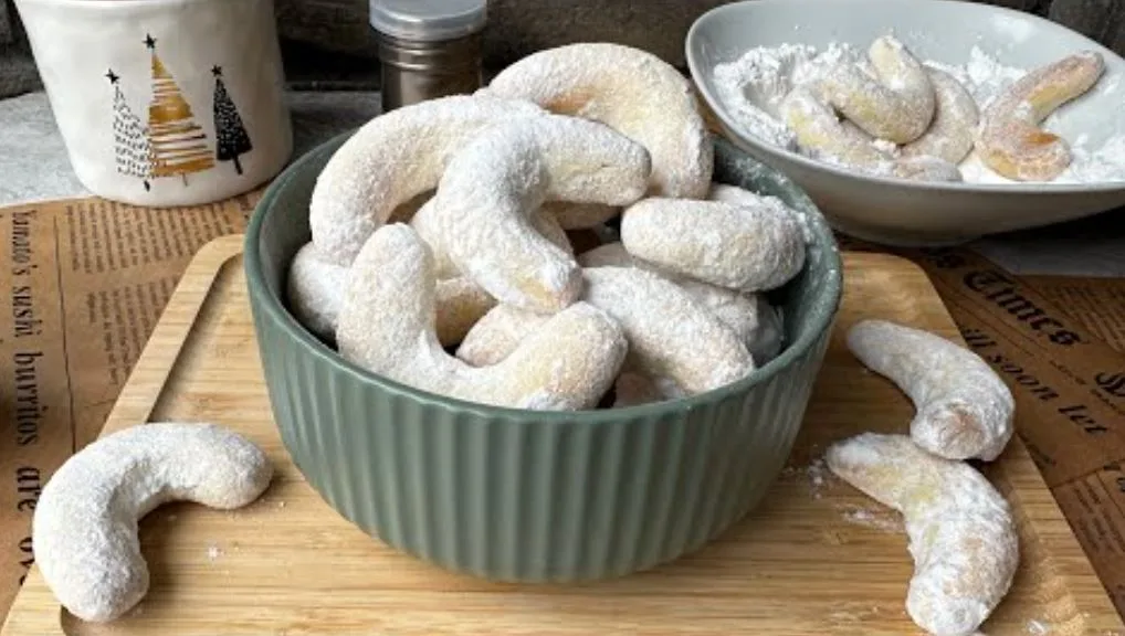 Sjediniti sve sastojke, maslac seći na listiće, umesiti testo, oblikovati kiflice i staviti na pleh obložen pek papirom. Peći na 180 stepeni nekih 10 minuta. Vodite računa da kiflice ostanu bele. Uvaljati u prah šećer i držati u nekoj posudi sa poklopcem.