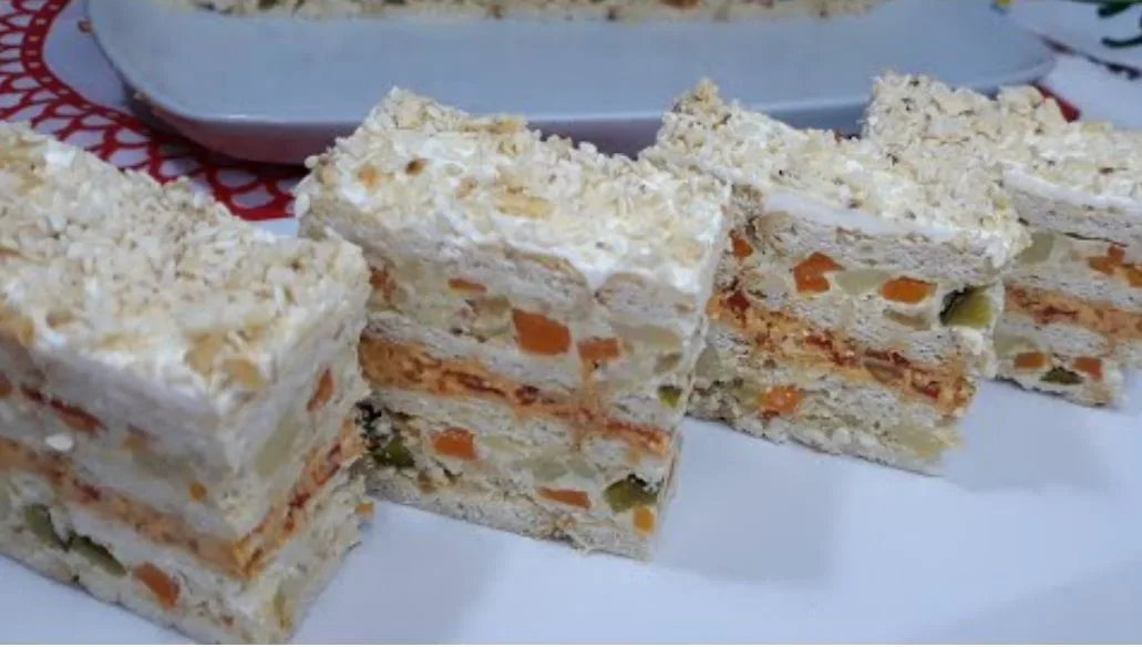 Ova posna slana torta sa krekerima je idealan izbor za sve prilike – jednostavna je za pripremu, vizuelno privlačna i bogata ukusom. Kombinacija povrća, kremastog fila i hrskavih krekera čini je neodoljivom. Uživajte u ovom specijalitetu sa svojom porodicom i prijateljima!