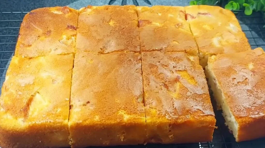 Priprema: Umutite jaja sa prstohvatom soli i šećerom, pa dodajte mleko i istopljeni puter. Promešajte, a onda dodajte cimet,vanilu i rendanu koru limuna. Opet promešajte, pa dodajte prosejano brašno sa praškom za pecivo. Sjedinite i dodajte jabuke koje ste sitno iseckali. Prelijte sokom od limuna i promešajte. Sipajte dobijenu smesu u vatrostalnu posudu koju ste nauljili. Pecite u rerni na 180°C oko 40-45 minuta.