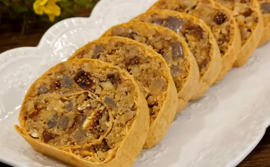 Slatka salama, filovana oblatna, oblanda kako god da kažete, je jedan izvrstan rolat sa smokavama, orasima, rahat lokumom.