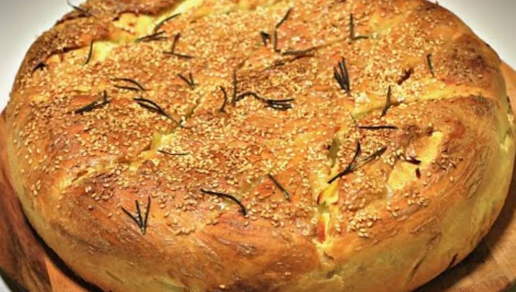 Sastojci i priprema: 40 gr. kvasca, 400 ml. mlake vode, 700 – 800 gr. brašna, 2 kašičice soli (plus da se posoli krompir), 2 kašičice šećera, 100 ml. ulja, 4 srednja krompira, 150 gr. posnog margarina, 3 – 4 kašike posnog majoneza, susam.