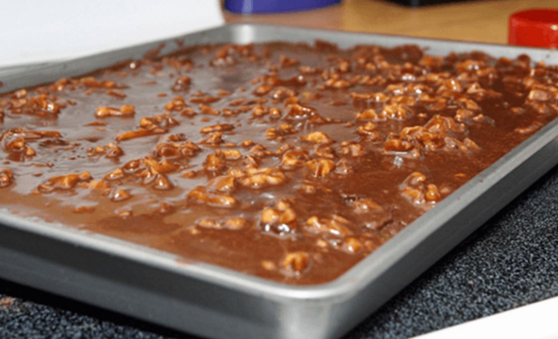 Na kraju umešajte naseckane orahe i prelijte preko toplog kolača.