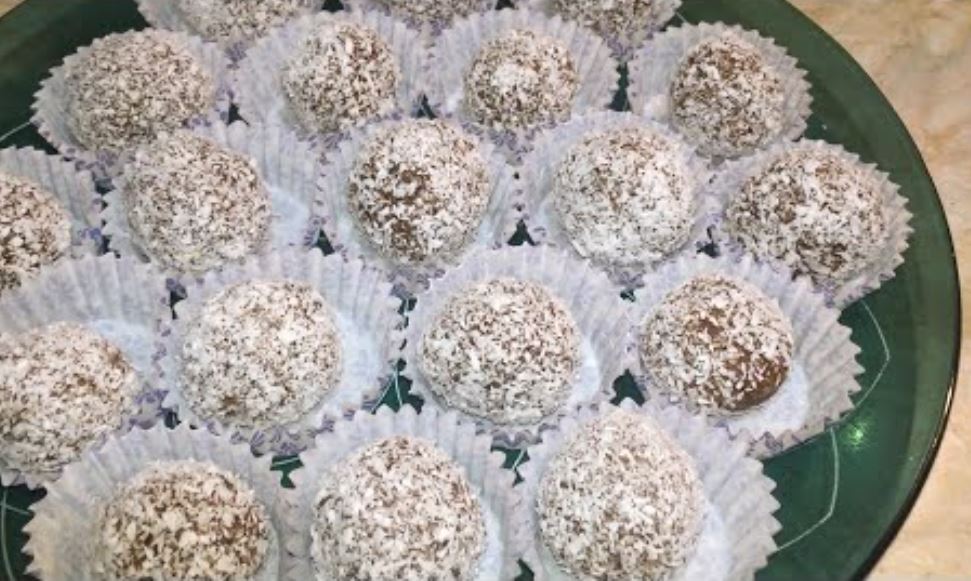 Priprema: Otopite margarin, šećer, čokoladu i kafu, dodajte keks i kokos, oblikujte kuglice i uvaljajte ih u kokos.
