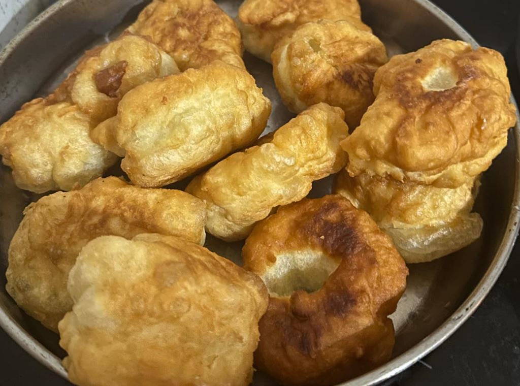 Testo pržite u dubokom ulju, po par minuta sa svake strane, pa odložite na kuhinjski ubrus da upije višak masnoće.