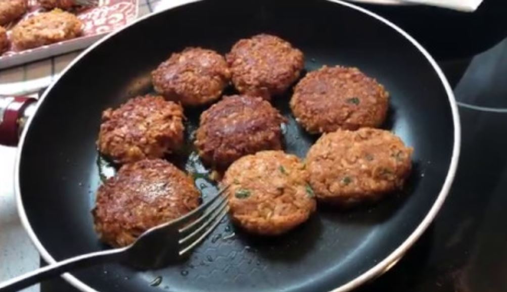 Sve sastojke sjediniti i oblikovati ćevape ili pljeskavice. Peći na tiganju ili roštilju dok ne porumene. Detalje pripreme pogledajte u videu.