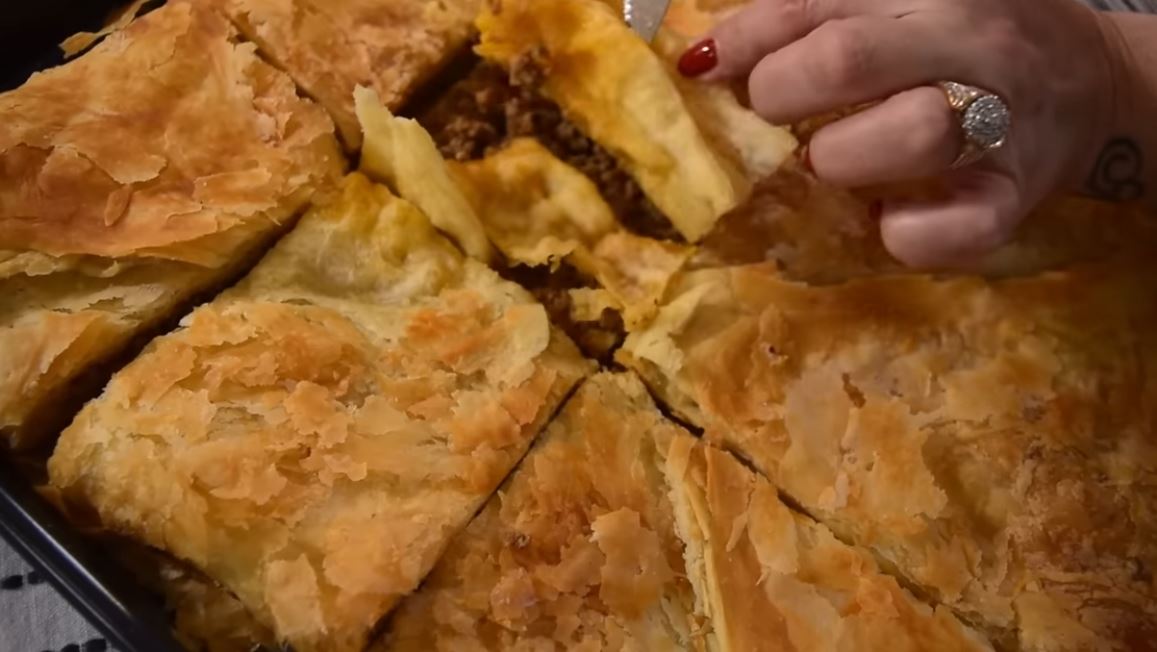 Tako hrskava i preukusna , domaća pita sa mesom. Možete je filovati sa onim šta vi najviše volite , može sa spanaćem, sirom ili prazilukom. Jednostavna i lagana priprema. Napravite i iznenadite vašu porodicu i prijatelje.