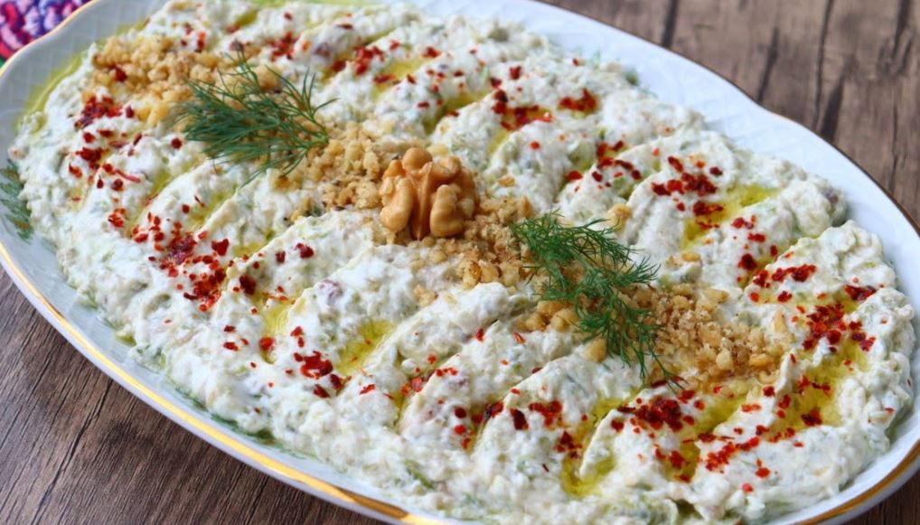 Priprema: Na maslinovom ulju propržite orahe, pa dodajte rendane tikvice. Posolite i kada se isprži sipajte u posudu i ohladite. Zatim u tu posudu dodajte rendan beli luk, kao i jogurt.