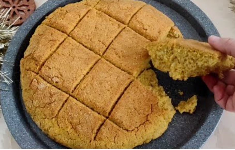 Samo vodom zamijesite tijesto, sipajte u podmazan pleh i poravnajte.
