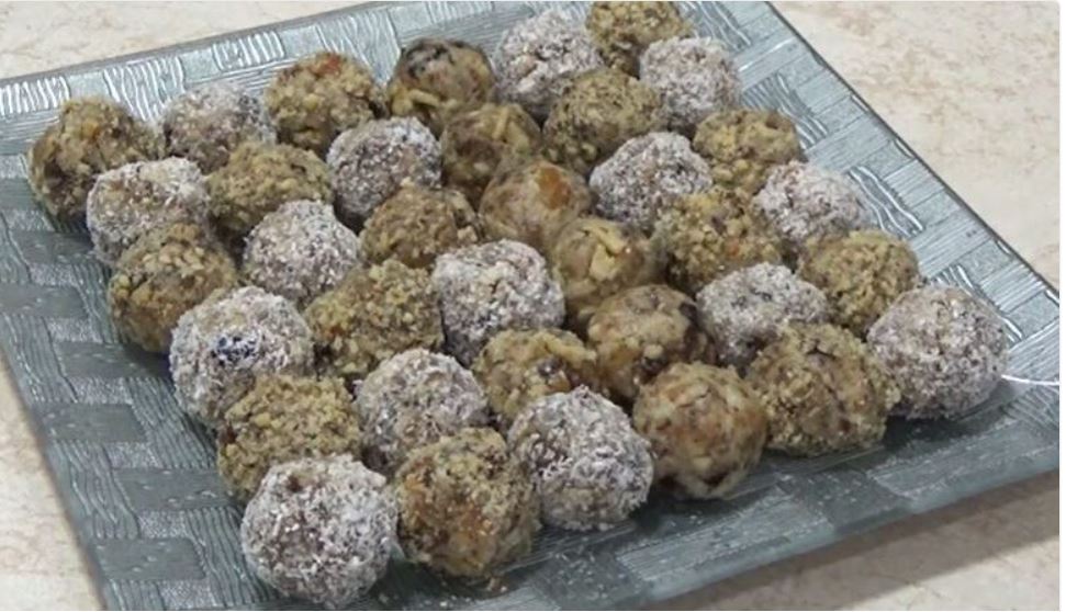 Od smese praviti kuglice veličine oraha i valjati ih u kokosovo brašno ili mlevene orahe.