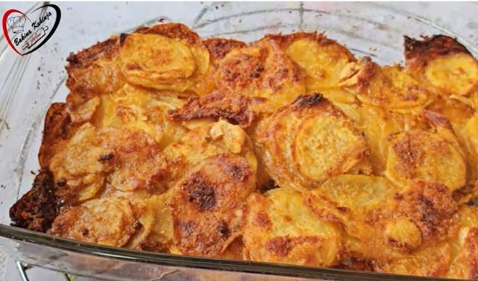 Krompir isecite na kriške, začinite solju, biberom, paprikom, belim lukom i prezлама, prelijte uljem i pecite dok ne dobije zlatno-smeđu boju i hrskavu koricu.