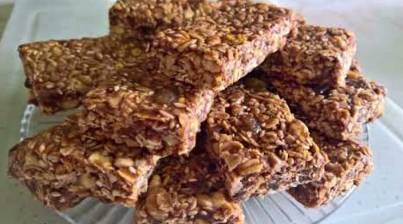 Otopite margarin sa šećerom, čokoladom i medom, dodajte susam, orahe i musli, sve dobro sjedinite, utisnite u pleh i ostavite da se stegne.