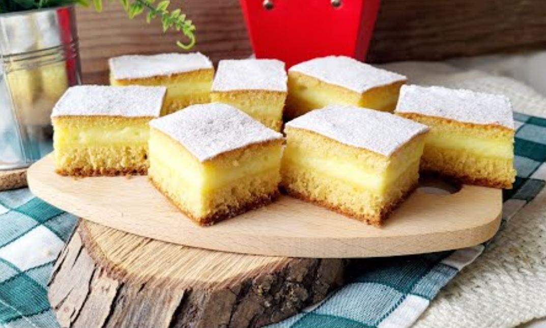 Umutite jaja sa šećerom i vanil šećerom, dodajte ulje, mleko, brašno i prašak za pecivo, sipajte pola smese u pleh, prelijte kuvanim pudingom od vanile, zatim dodajte ostatak testa i pecite na 180°C oko 35–40 minuta.