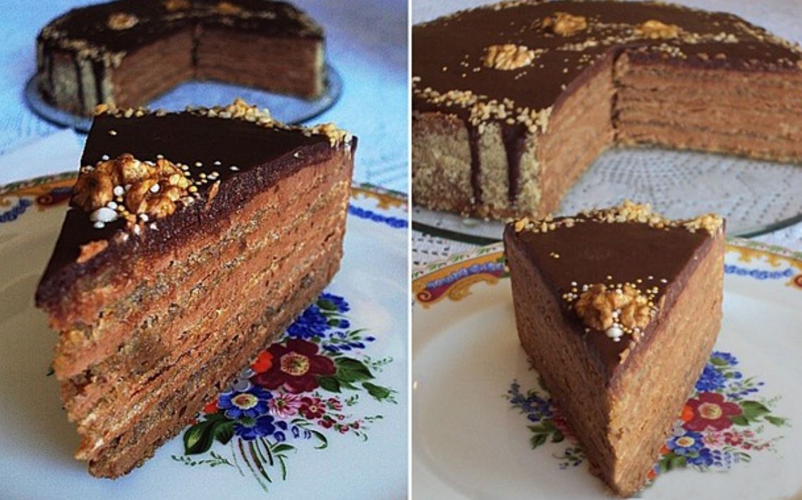Kada ste sve kore naredali cijelu tortu omažite, stranice torte pospite mljevenim orasima i na kraju prelijte čokoladnom glazurom, ukrasite orasima.
