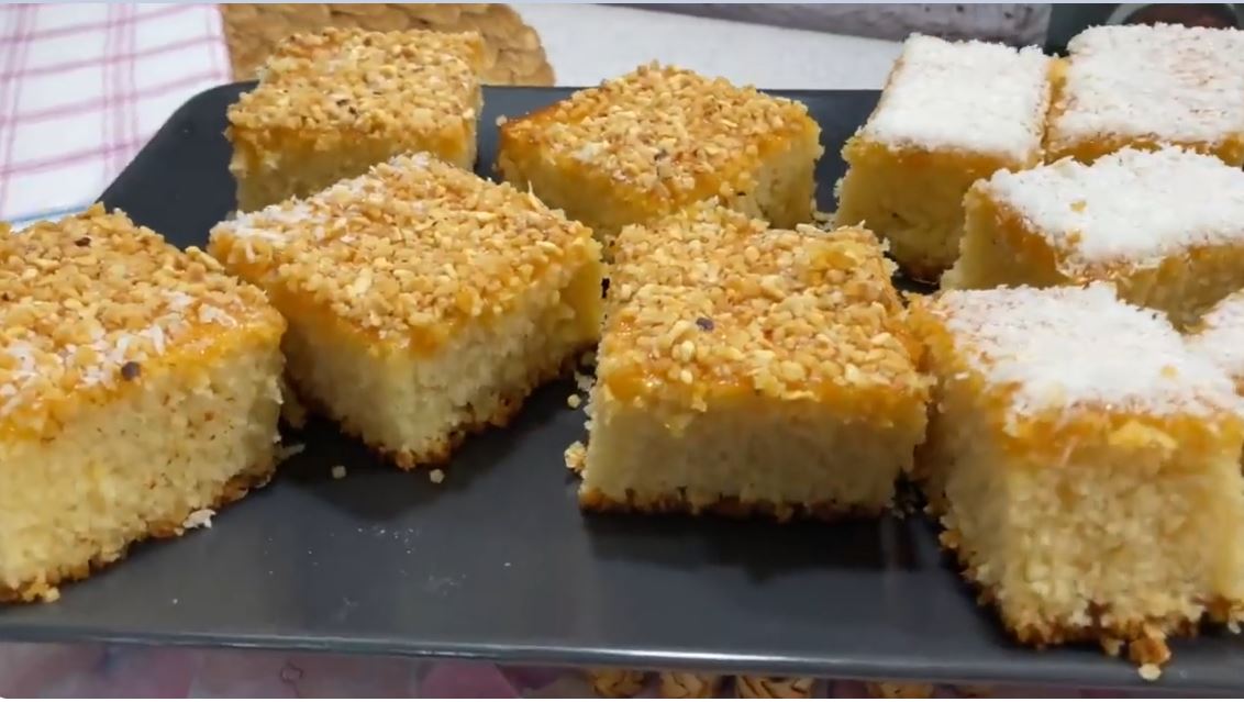 Sve sastojke sjediniti, sipati u tepsiju, polovinu mase premazati pekmezom po želji, dekorisati po ukusu i ispeći – dobićete dva različita ukusa iz jedne tepsije bez vage i muke!